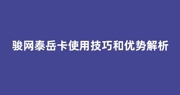 骏网泰岳卡使用技巧和优势解析