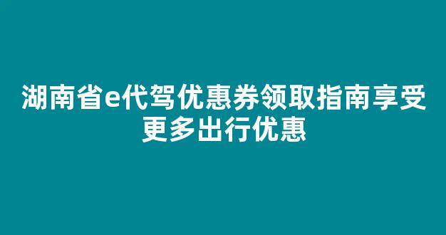 湖南省e代驾优惠券领取指南享受更多出行优惠