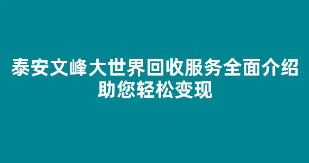 泰安文峰大世界回收服务全面介绍助您轻松变现