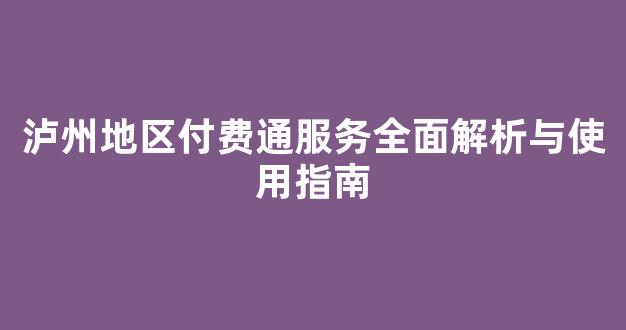 泸州地区付费通服务全面解析与使用指南