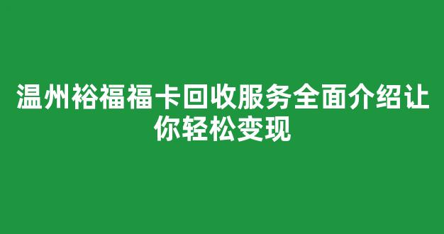 温州裕福福卡回收服务全面介绍让你轻松变现
