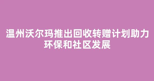 温州沃尔玛推出回收转赠计划助力环保和社区发展