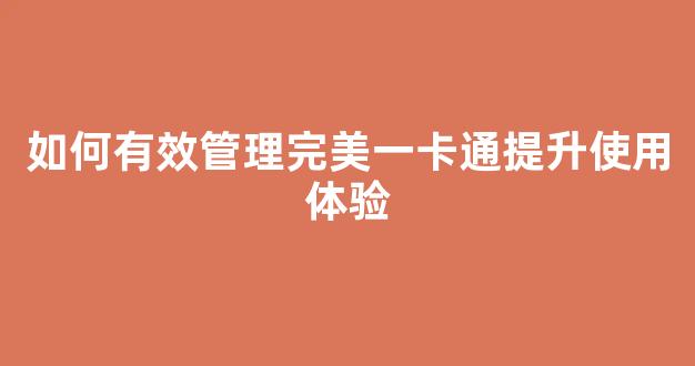 完美一卡通作为现代化智能支付工具,已成为许多人日常生活中不可或缺的一部分。无论是日常消费、公共交通,还是校园或企业的各类应用,完美一卡通的便利性与高效性得到了广泛的认可。然而,随着使用频率的增加,如何有效管理这一工具,提升用户体验,成为了大家关注的焦点。本文将从多个方面详细介绍如何合理管理完美一卡通,帮助用户更好地利用这一工具,提高其便捷性和实用性。