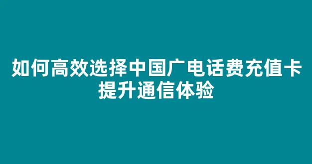 如何高效选择中国广电话费充值卡提升通信体验