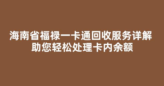 海南省福禄一卡通回收服务详解 助您轻松处理卡内余额