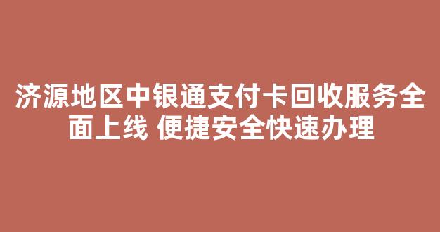 济源地区中银通支付卡回收服务全面上线 便捷安全快速办理