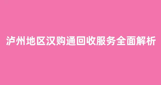 泸州地区汉购通回收服务全面解析