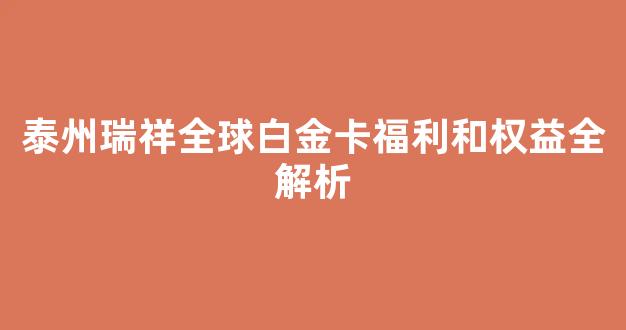 泰州瑞祥全球白金卡作为一种高端会员卡,提供了丰富的福利和权益,旨在为用户提供便捷、高效且多元的生活服务。它不仅是身份的象征,也让持卡人享受到了专属的优待政策。本文将全面解析泰州瑞祥全球白金卡的各项福利,帮助您深入了解其优势和特色。