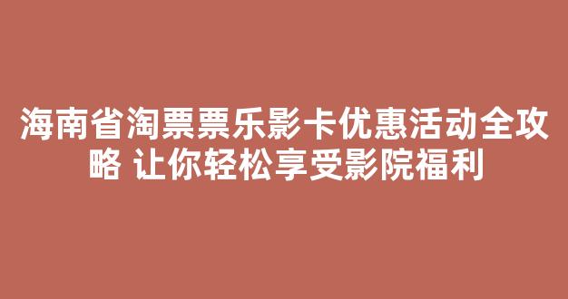 在海南省,淘票票乐影卡的优惠活动给影迷们带来了许多福利。无论你是常常去电影院看电影,还是偶尔去享受娱乐时光,乐影卡都能为你带来实实在在的优惠。本文将详细介绍淘票票乐影卡的优惠活动内容,帮你更好地享受影院的福利,让每一次观影都变得更加实惠和轻松。