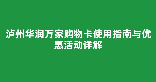 泸州华润万家购物卡是很多消费者在购物时经常使用的一种支付方式。它方便快捷,能够让消费者在购物时享受更多的优惠活动和折扣。本文将详细介绍如何使用泸州华润万家购物卡,如何参与优惠活动,如何通过沃卡回收平台回收购物卡等内容。接下来将详细解析这几方面的信息,帮助大家更好地使用和管理自己的购物卡。
