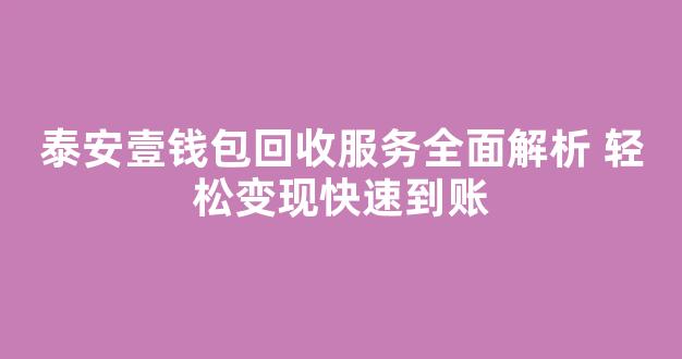 泰安壹钱包回收服务全面解析 轻松变现快速到账