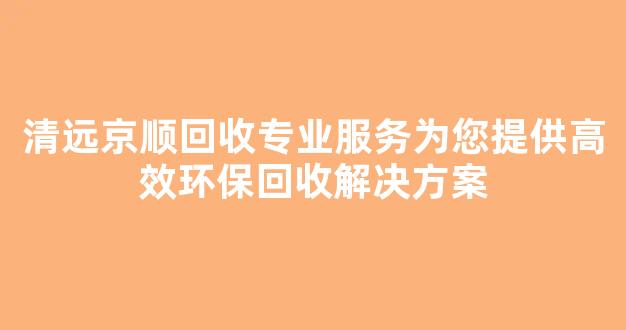 清远京顺回收专业服务为您提供高效环保回收解决方案