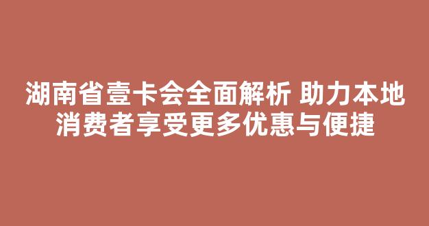 湖南省壹卡会全面解析 助力本地消费者享受更多优惠与便捷