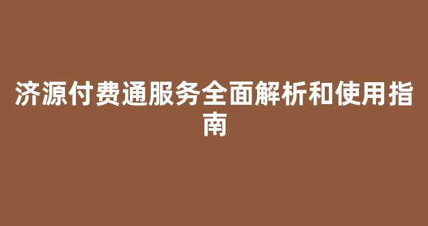 济源济付源费付通费服务通全面服务解析全面和解析使用和指南使用