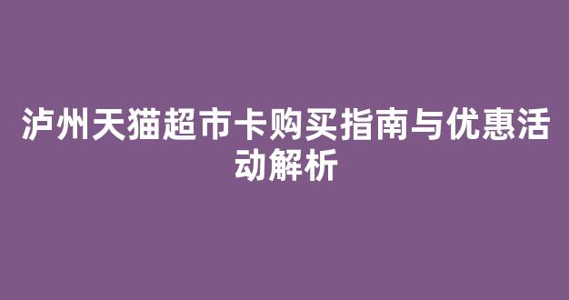 泸州天猫超市卡是一种非常方便的购物卡,它让消费者能够在天猫超市享受各种商品的折扣和优惠。通过购买泸州天猫超市卡,用户可以省钱并享受更加便捷的购物体验。本文将详细解析泸州天猫超市卡的购买指南,以及相关的优惠活动,帮助大家更好地了解如何使用这张卡以及如何最大化地享受优惠。