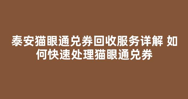 泰安猫眼通兑券回收服务详解 如何快速处理猫眼通兑券