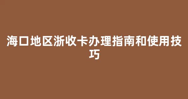 浙收卡是一种便捷的电子支付工具,在海口地区的居民和游客中越来越受到欢迎。通过浙收卡,用户可以轻松进行交通支付、购物消费等,极大地提高了生活的便捷性和效率。本文将详细介绍海口地区浙收卡的办理流程、使用技巧以及回收技巧,帮助你更好地利用这张卡。