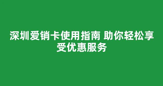 深圳爱销卡使用指南 助你轻松享受优惠服务