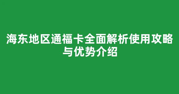 通福卡是海东地区推出的一种便捷的支付工具,广泛应用于公共交通、日常消费等方面。这张卡不仅简化了居民的支付流程,还提供了许多便利。本文将全面解析通福卡的使用方法、优势以及如何更好地利用这一工具,帮助海东地区的居民和游客轻松上手。