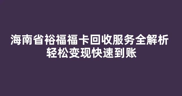 海南省裕福福卡回收服务全解析 轻松变现快速到账