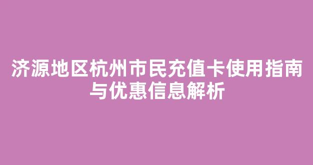 济源地区杭州市民充值卡使用指南与优惠信息解析