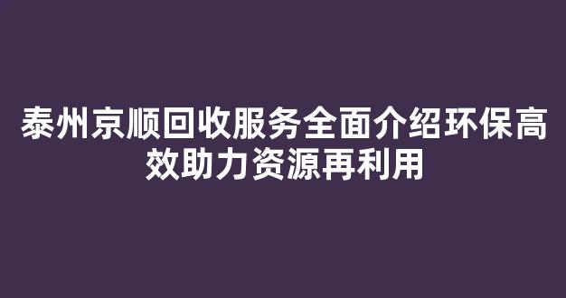 泰州京顺回收服务全面介绍环保高效助力资源再利用