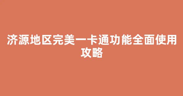 济源地区完美一卡通功能全面使用攻略