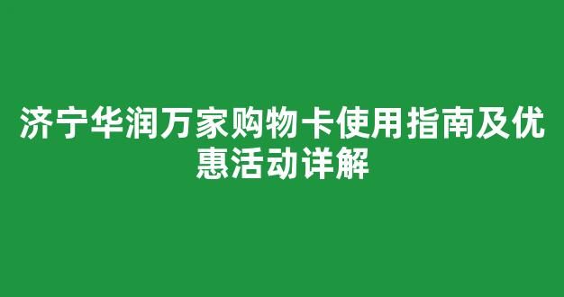 济宁华润万家购物卡是一种非常便捷的购物支付工具,受到很多消费者的青睐。本文将为大家详细介绍济宁华润万家购物卡的使用方法、优惠活动以及如何通过回收平台将其转化为现金。通过本文,您将全面了解如何更好地使用华润万家购物卡,以及如何享受各种优惠。