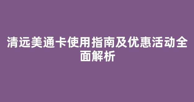 清远美通卡使用指南及优惠活动全面解析