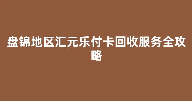 盘锦地区汇元乐付卡回收服务全攻略