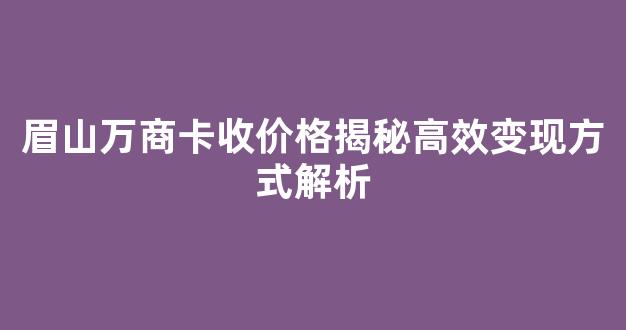眉山万商卡收价格揭秘高效变现方式解析