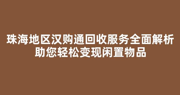 珠海地区汉购通回收服务全面解析助您轻松变现闲置物品