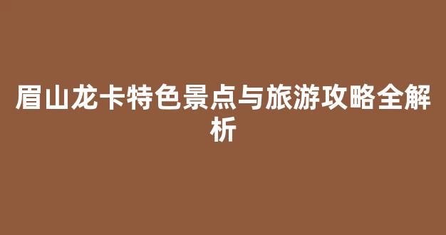 眉山龙卡是四川省眉山市的一个重要旅游目的地。这里拥有丰富的自然景观和独特的人文资源,吸引着成千上万的游客前来探索。从美丽的山水风光到深厚的历史文化,每一处景点都具有鲜明的特色。如果你计划前往眉山龙卡旅游,这篇旅游攻略将为你提供详尽的信息,帮助你更好地规划你的行程。