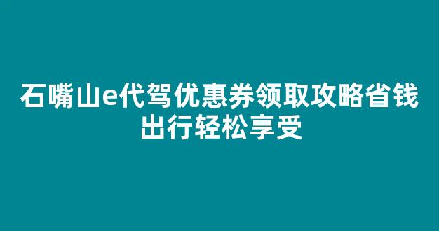 石嘴山e代驾优惠券领取攻略省钱出行轻松享受