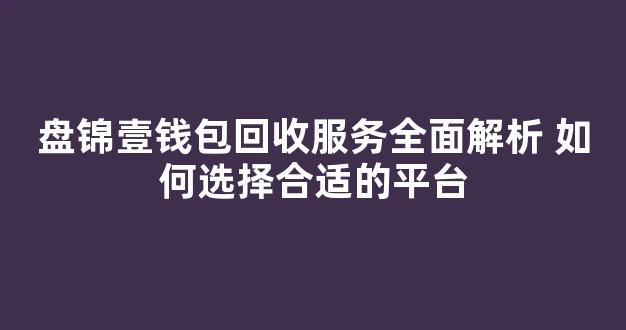 盘锦壹钱包回收服务全面解析 如何选择合适的平台