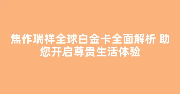 焦作瑞祥全球白金卡全面解析 助您开启尊贵生活体验