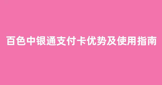 百色中银通支付卡优势及使用指南