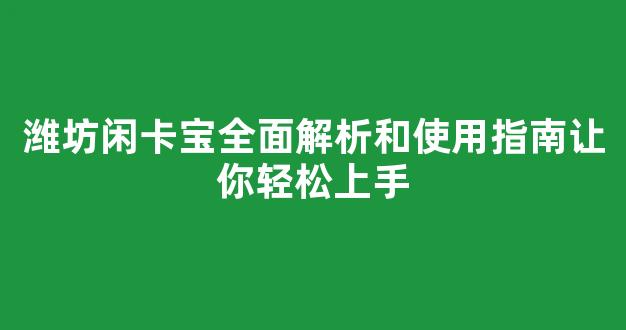 潍坊闲卡宝全面解析和使用指南让你轻松上手