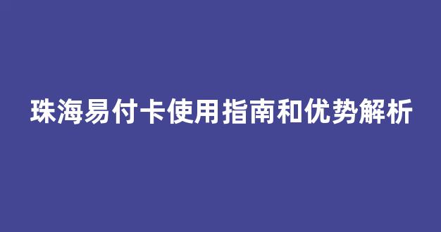珠海易付卡使用指南和优势解析