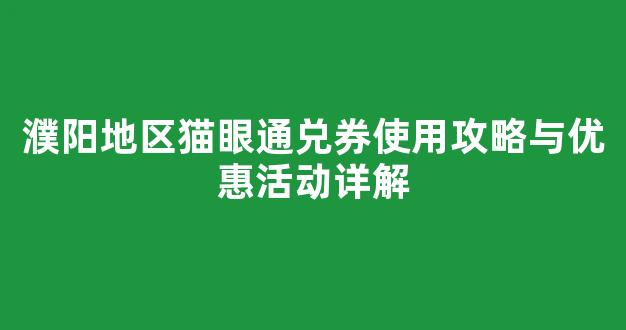 濮阳地区猫眼通兑券使用攻略与优惠活动详解