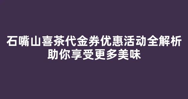 石嘴山喜茶代金券优惠活动全解析助你享受更多美味