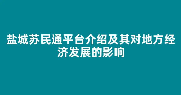 盐城苏民通平台介绍及其对地方经济发展的影响