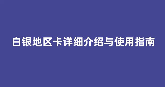 白银地区卡详细介绍与使用指南