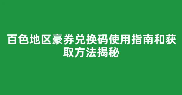 百色地区豪券兑换码使用指南和获取方法揭秘