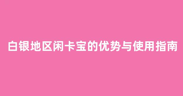 白银地区闲卡宝的优势与使用指南