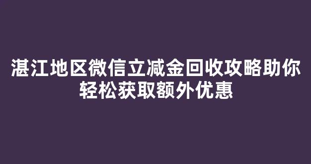 微信立减金是一项非常实用的优惠措施,能够帮助用户在购物时享受额外的折扣。对于湛江地区的消费者来说,如何更好地回收微信立减金并充分利用这一优惠,成为了许多人关心的话题。本文将详细介绍湛江地区微信立减金的回收攻略,帮助你轻松获取额外优惠。通过了解如何回收和利用这些立减金,您可以在购物时节省更多。