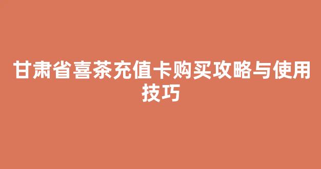 甘肃省喜茶充值卡购买攻略与使用技巧