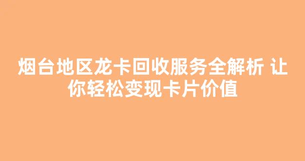 烟台地区龙卡回收服务全解析 让你轻松变现卡片价值