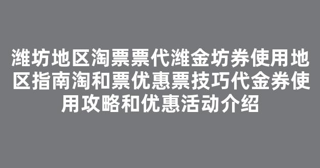 潍坊地区淘票票代潍金坊券使用地区指南和票优惠票技巧代金券使用攻略和优惠活动介绍