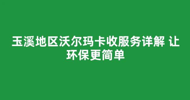 玉溪地区沃尔玛卡收服务详解 让环保更简单